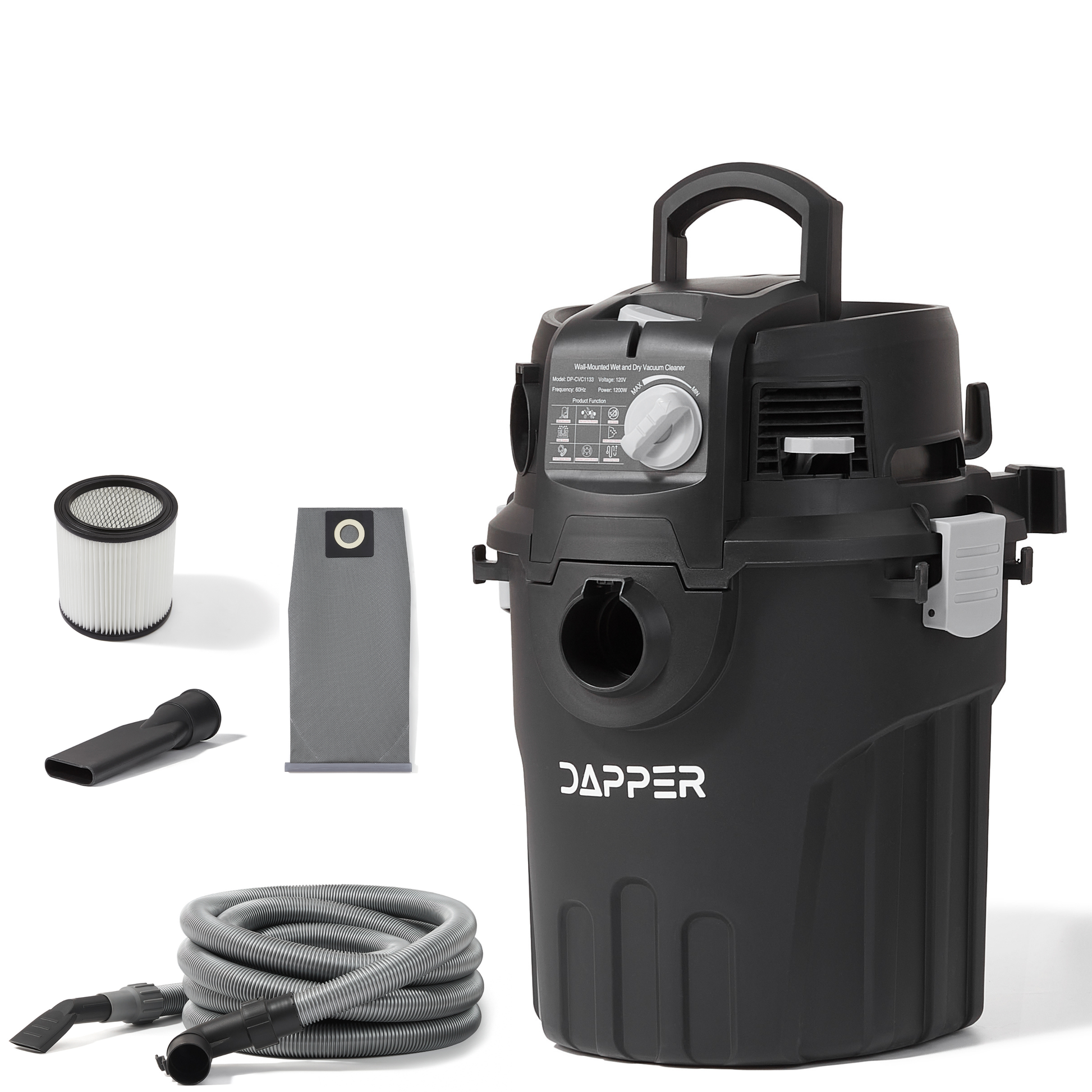 This wall-mounted vacuum is designed for powerful, everyday cleanup in garages, workshops, and utility spaces where performance and organization matter. Built with a durable brushless motor and delivering 5.5 HP of consistent power, it provides strong suction performance rated at ≥19 kPa, making it effective for dust, dirt, sawdust, and general debris.