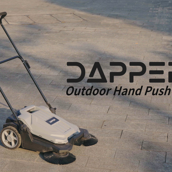 Efficiently sweep outdoor spaces with Dapper Supply's Walk-Behind Hand Push Floor Sweeper. Its 5.25 gallon capacity and 25.5" sweeping width allows for effective cleaning, covering up to 27,900 ft² per hour. Save time and effort while achieving a pristine result.